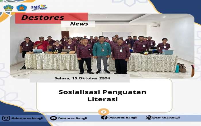 Kegiatan Sosialisasi Penguatan Literasi di SMK Negeri 2 Bangli dengan narasumber Bapak I Nyoman Sutrisna, M. Hum., dari Balai Bahasa Provinsi Bali