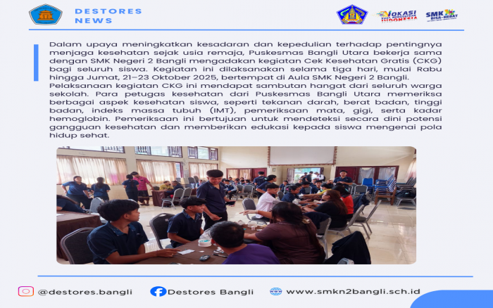 Bangli, 23 Oktober 2025 — Dalam upaya meningkatkan kesadaran dan kepedulian terhadap pentingnya menjaga kesehatan sejak usia remaja,